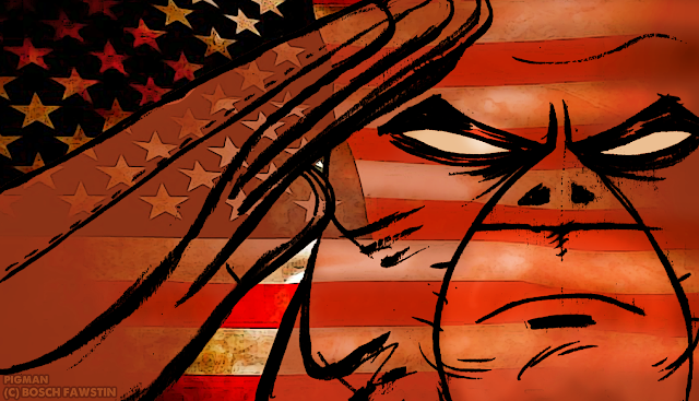 Propaganda is square-bound, 9 x 11, 128 pages, 75 of them color, the rest black & white for $15. The book is filled with poster-type images of the main characters, mainly of Pigman, as well as a number of essays I've written on all things Islam and Jihad. This blog was meant to be a way to get myself out there while working on THE INFIDEL, so these images are now exclusive to this collection, though a few of them may end up as individual covers of The Infidel series.
